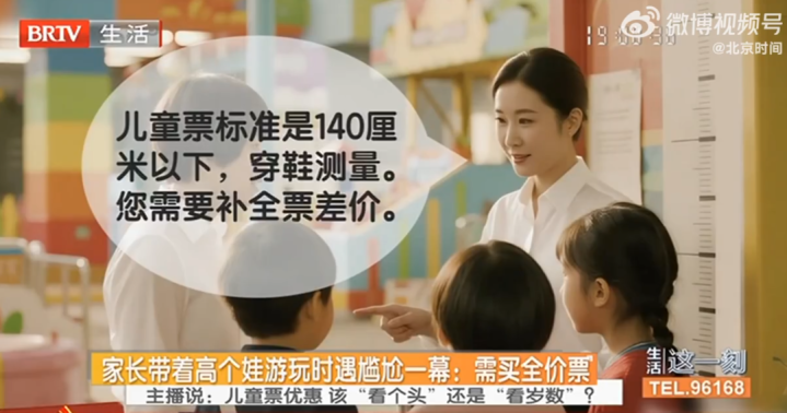 近日,上海陈女士暑期带10岁女儿以及女儿国外同学一家,游玩上海普陀区环球港主题乐园时,因女儿同学身高测量方式引发补票纠纷,事件也引发对儿童票测量标准的广泛讨论。