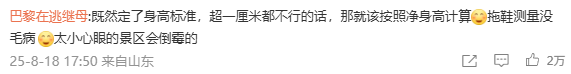 同学母亲质疑结果,要求光脚测量,结果为138厘米(达标)。但乐园主管坚持“必须穿鞋测”规定,反问“难道要脱鞋玩?”,僵持不下。